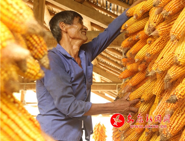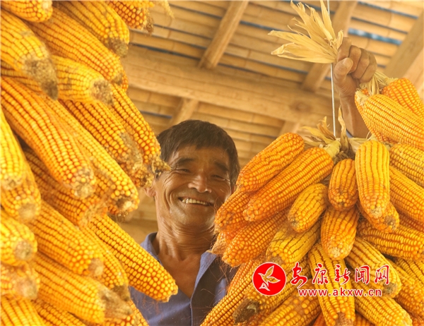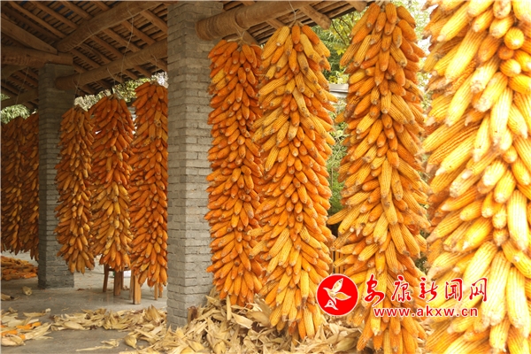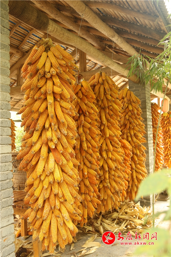 辛勞了大半年的村民,面對掛滿庭院的金色玉米,掩不住內(nèi)心豐收的喜悅和滿意的笑容。