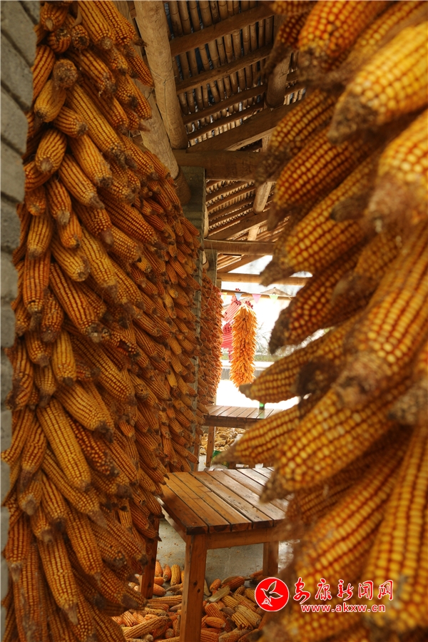 黃澄澄的玉米掛滿房前屋后。記者將這一場景迅疾抓拍,成就了“金秋豐收季”又一作品。