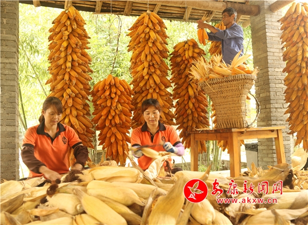 有的忙于運送,有的忙于剝穗,有的忙于上架,豐收的喜慶洋溢在每一個角落。