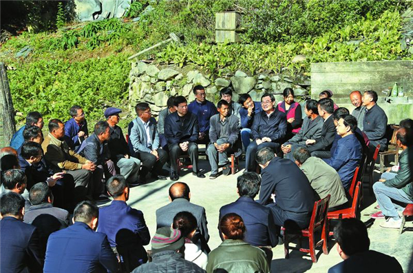 ? (10月10日,省委書記胡和平深入嵐皋縣南宮山鎮(zhèn)西河村,與部分群眾及鎮(zhèn)村干部進(jìn)行座談,了解扶貧工作進(jìn)展,聽取群眾意見建議,與大家一起商討脫貧致富的措施。陜西日?qǐng)?bào)記者 宋紅梅/攝)?