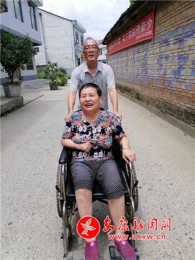 只要遇到好天氣,張業(yè)印就會(huì)用輪椅推著妻子到村部暢亮的大院巴上曬太陽,或一起到社區(qū)里鄰里之間串個(gè)門,一起聊家常;有時(shí)還會(huì)推著輪椅遠(yuǎn)到陜南民俗村第一村的魯家大院轉(zhuǎn)一轉(zhuǎn),讓妻子始終保持著愉悅的好心情。