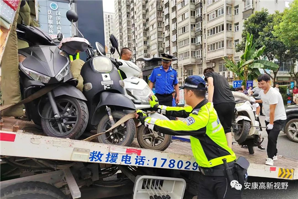 針對(duì)車輛亂停亂放等交通秩序管理問(wèn)題,執(zhí)法人員對(duì)花園大道、秦嶺大道、學(xué)府路、高新四路等主次干道沿線開(kāi)展全天候整治,并向沿街商戶下發(fā)摩托車、電動(dòng)車規(guī)范停車告知書(shū)。對(duì)占用人行道、消防通道、公交泊位等行為進(jìn)行拍照取證后強(qiáng)制拖移。同時(shí),向市民群眾發(fā)放文明交通宣傳彩頁(yè),引導(dǎo)大家自覺(jué)摒棄交通陋習(xí)、遵守交通法律法規(guī),安全文明出行。