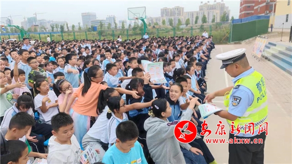 活動中,大隊民警結合轄區(qū)實際情況,首先通報了暑假期間全區(qū)道路交通安全,特別是涉及中小學生的典型事故案例,以身邊的事故教育身邊的人,以案說法、以案為鑒,希望同學們從中汲取深刻教訓,遠離交通事故危害。其次,民警針對中小學生上下學出行特點,以“守法規(guī)知禮讓、安全文明出行”為主題,通過擺放宣傳展板、發(fā)放宣傳資料、以及互動問答等形式,圍繞學生正確走路、文明乘車、安全騎車幾個方面,向同學們宣傳講解日常交通安全常識,生活中出行應當注意的行為規(guī)范,發(fā)生交通事故后如何求助,教育引導同學們認真遵守道路交通安全法規(guī),牢固樹立交通安全文明意識,做到知危險會避險,守法規(guī)知禮讓,真正提高安全防范意識和自我保護能力。