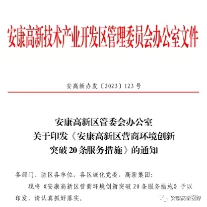 聚焦“三個年” | 安康高新區(qū)出臺營商環(huán)境創(chuàng)新突破“二十條”服務措施