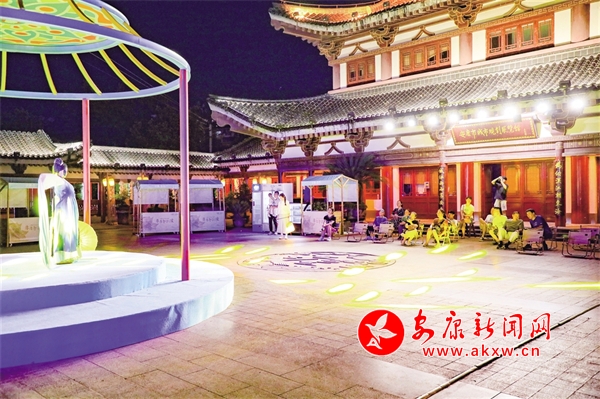 在安瀾樓南側(cè),刻有金州八景的燈籠高高懸掛,穿上漢服,提著燈籠,走向?yàn)懮蠠魰?huì),感受花燈如晝。移步廊道,徜徉安瀾夜市,感受煥然一新的公園氛圍、琳瑯滿目的文創(chuàng)精品和目不暇接的特色非遺。