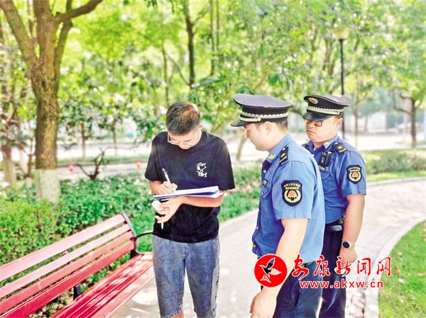 連日來(lái),漢濱區(qū)、高新區(qū)城管部門(mén)在中心城區(qū)全域持續(xù)開(kāi)展“文明有我 痰吐文雅”專項(xiàng)糾治執(zhí)法行動(dòng)。城管執(zhí)法人員依據(jù)規(guī)定,對(duì)“隨地吐痰”等不文明行為人,處以十元以上五十元以下的罰款,或以發(fā)朋友圈集贊的方式接受柔性執(zhí)法免于罰款。據(jù)統(tǒng)計(jì),截至9月6日,已開(kāi)展現(xiàn)場(chǎng)處罰258人次,其中開(kāi)具罰單62張。圖為隨地吐痰的市民正在接受行政處罰。屈明佳 攝