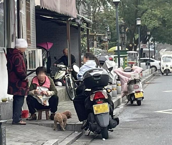11月9日,在城區(qū)東內(nèi)環(huán)路住戶門前,有市民帶著狗未系繩和鄰居聊天,狗在門前隨意跑動。(圖文/馬婷)