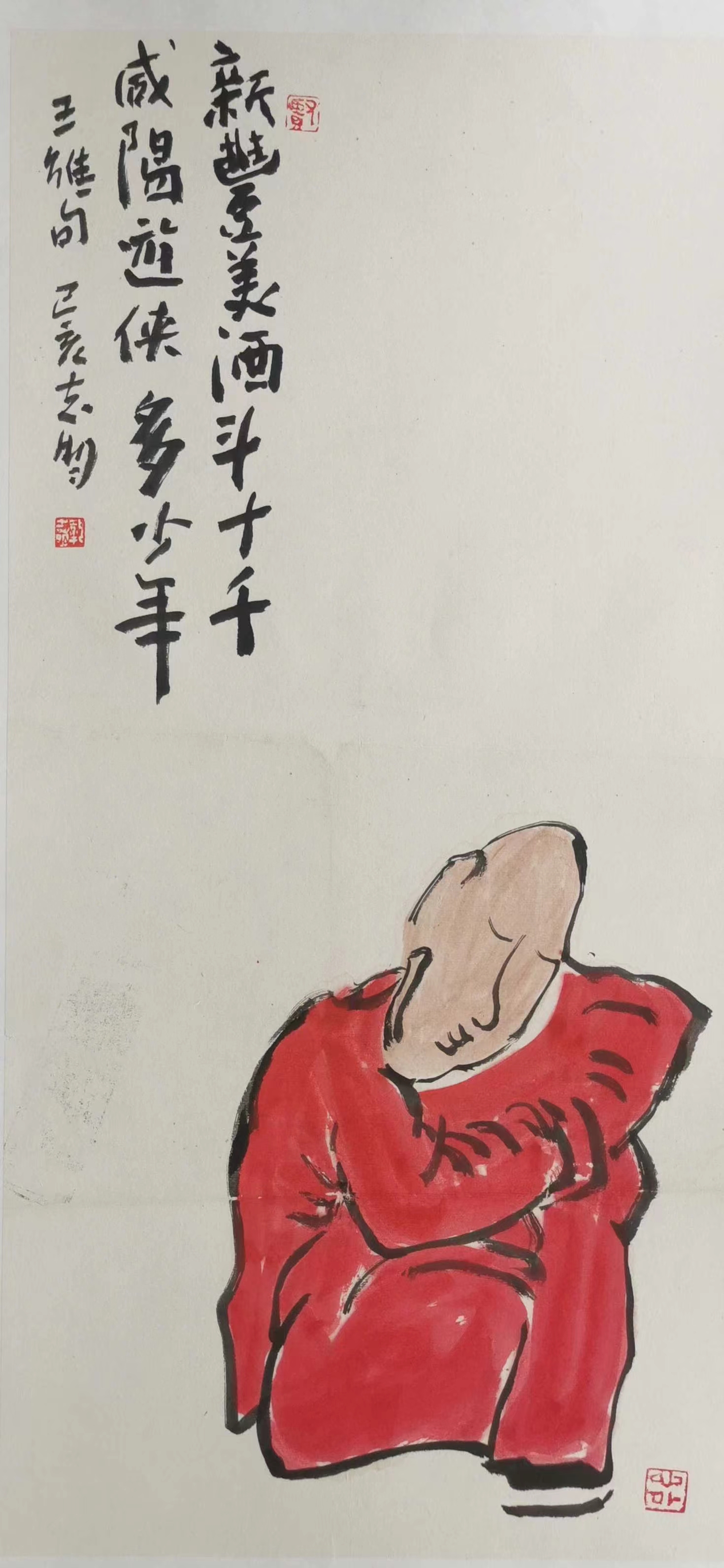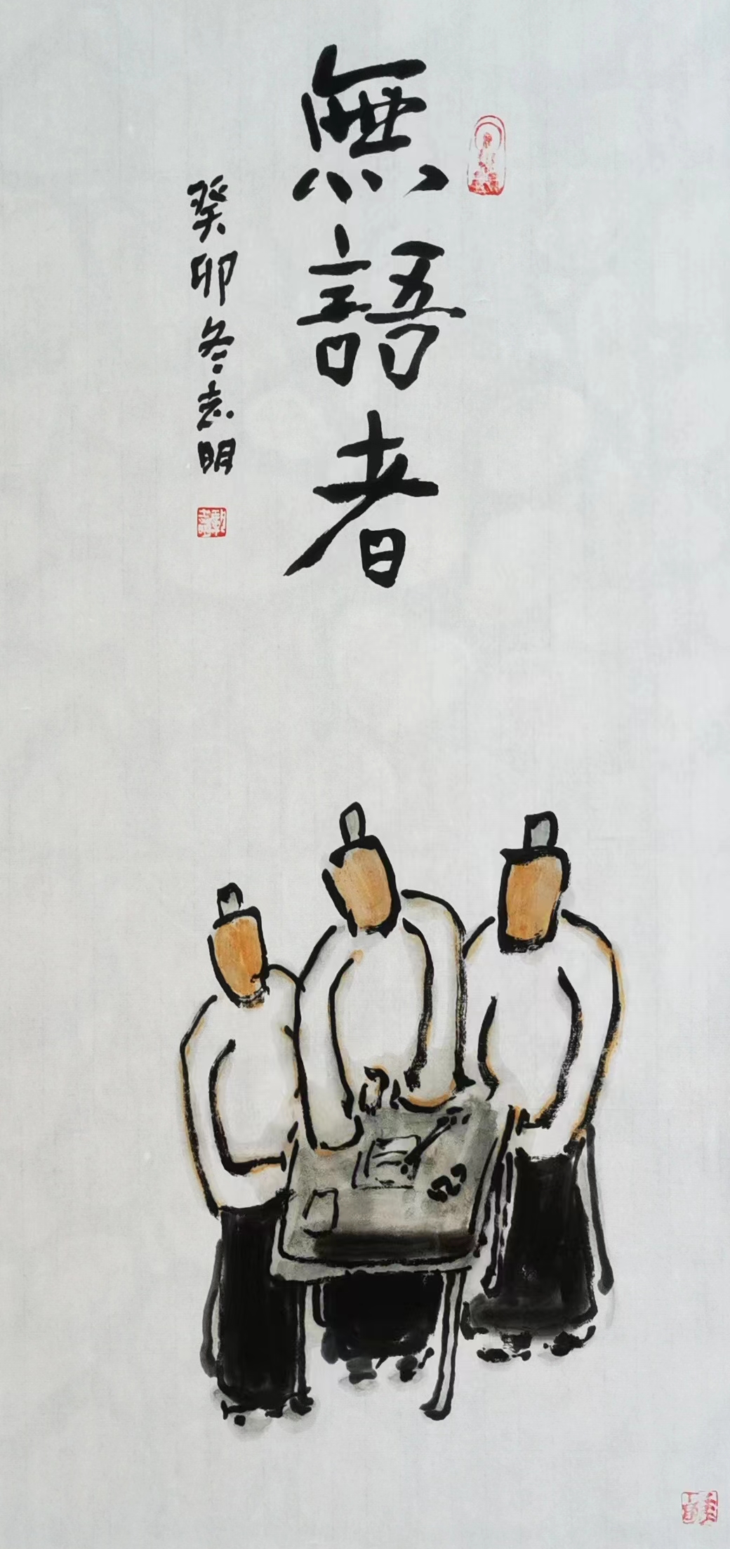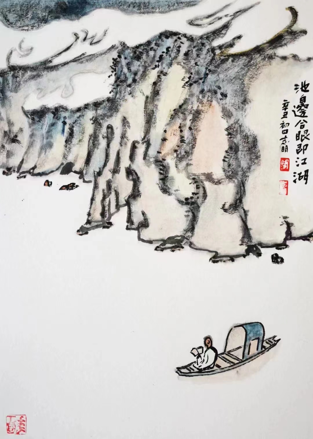 記得那一年的端午節(jié),鞏志明發(fā)來短信,是他寫的一首詩(shī):綠粽黃酒聚江邊,白帆紅燭祭屈原。三千清淚流不得,九萬渾念飄上天。誰有郁悶誰散淡,何謂圓滑何忠奸。十丈風(fēng)塵古今在,談笑真?zhèn)位聼煛?017年,我遷新居,鞏老師為我寄來小品畫《福到眼前》,我很喜歡,并懸掛至新居玄關(guān)。這些年,鞏志明老師常做影展畫展策劃及影評(píng)講座,自已也臨池不輟,水墨丹青,寄情抒懷,他的文人小品有思想性、有創(chuàng)造性。雖畫的是松風(fēng)明月,小舟流水或遠(yuǎn)古人物,但都寄托了他當(dāng)下的心境,以消塊壘。誠(chéng)如有人評(píng)論他為“吾師真文人,畫亦真性情!”他不僅只是身居畫室的怡情文人,他亦是心憂天下的豪俠。面對(duì)世間不平事,他也是激揚(yáng)文字,揮斥方遒!在功利的當(dāng)下,鞏志明尤其顯得難能可貴!?