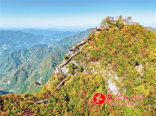 我們順著繞山腰的棧道走,棧道曲曲彎彎,左邊是望不到底的山谷,山谷那邊,又是一座獨立的山,手伸過薄霧,似乎能夠得著,可吼一聲,很長很長的時間回音才被山蕩過來。從山谷石崖上生長出來的野山茱萸,左一棵,右一株,上一簇,下一束,落光了葉子,只把一嘟嚕一嘟嚕彤紅的果實掛在枝頭,此刻的紅果實,包裹著一層亮晶晶的冰凌,紅里泛白,白中含紅,偶爾有一抹白霧繚繞,纏出幾許風采。