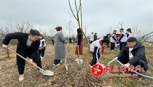 活動伊始,綠化公司的工作人員詳細地講解了植樹的要點?;顒蝇F(xiàn)場,大家分工協(xié)作,相互配合,放苗扶樹、揮鍬填土、踩土固苗、提水灌溉……充分發(fā)揚了團結協(xié)作、吃苦耐勞的優(yōu)良作風。在大家的共同努力下,一棵棵小樹屹立在春風中,成為這個春天又一道亮麗的風景。隊員們還親手懸掛小樹牌,許下自己美好心愿。?