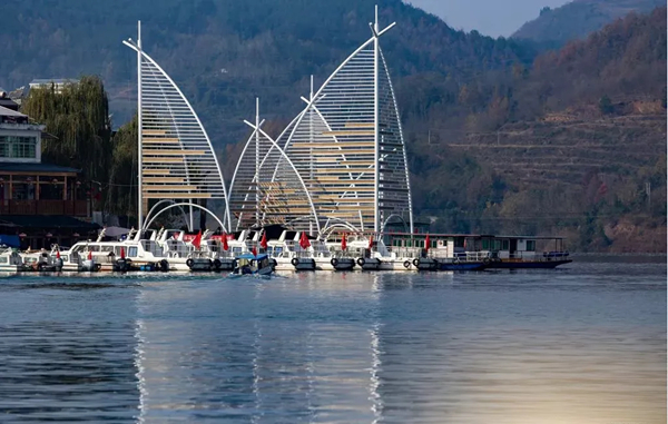 初到安康市漢濱區(qū)流水鎮(zhèn),放眼望去,青石鋪就的街道,頗具古風(fēng)的酒肆店面,令人耳目一新。緩步前行,步行百余步,及至碼頭,豁然開朗,碧水蜿蜒于青山之間,輕舟搖曳,漸行漸遠(yuǎn),不禁想起唐代詩人李白的那句“孤帆遠(yuǎn)影碧空盡,唯見長(zhǎng)江天際流”,飽具詩情畫意。