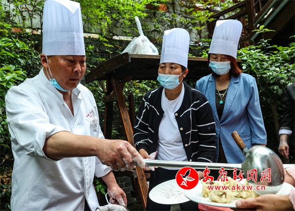 但隨著時代的發(fā)展,人們消費(fèi)理念的更新,能制作傳統(tǒng)白河“三點(diǎn)水”宴席的人越來越少,偌大一個縣,找不出幾個能夠獨(dú)當(dāng)一面制作傳統(tǒng)宴席白河“三點(diǎn)水”的廚師。所以他毅然決定辭去高薪的主廚工作,奔走于鄉(xiāng)村,上門做家政服務(wù),在實(shí)地操作技藝中傳幫帶一批會制作白河“三點(diǎn)水”宴席的鄉(xiāng)廚。