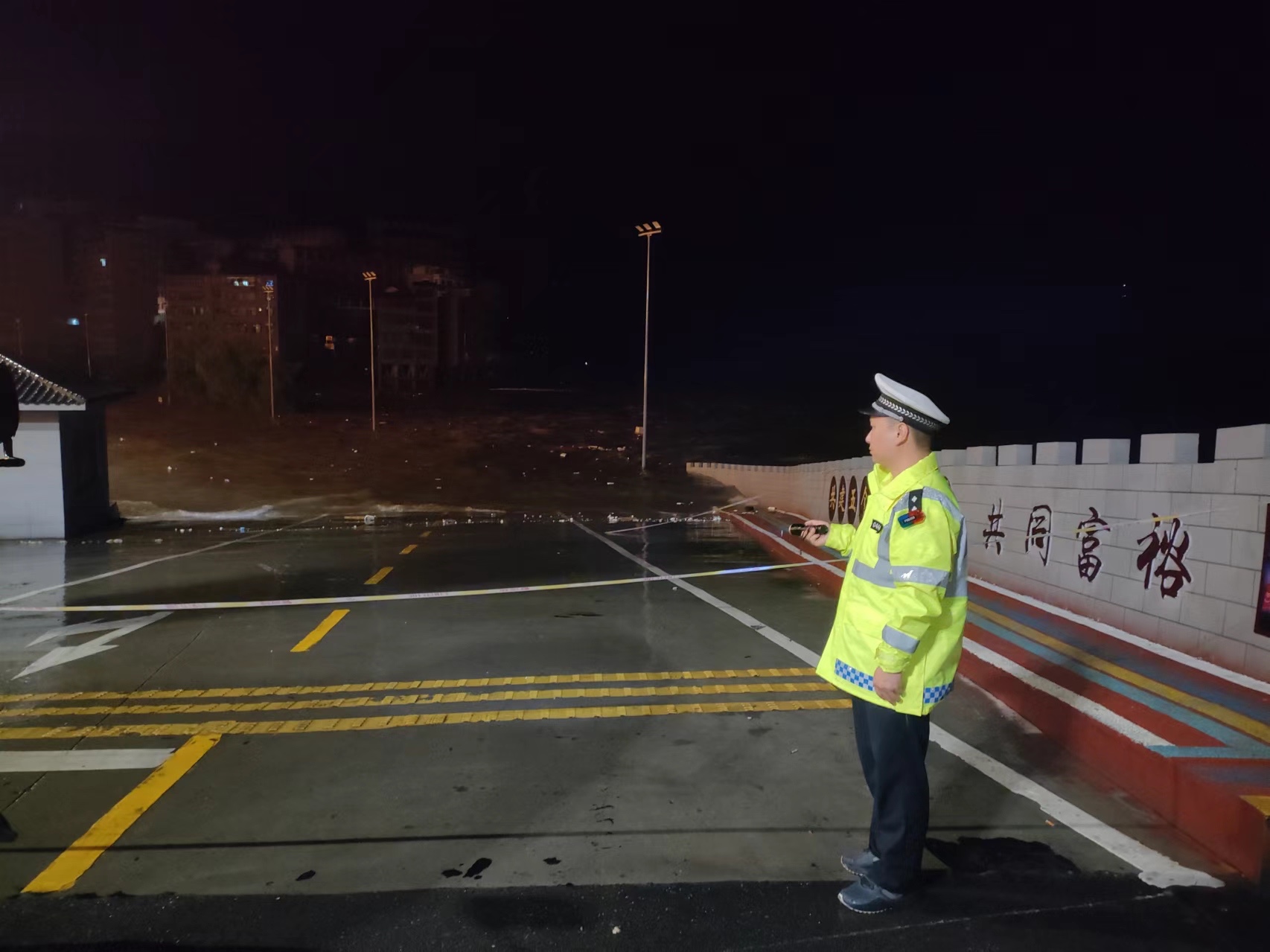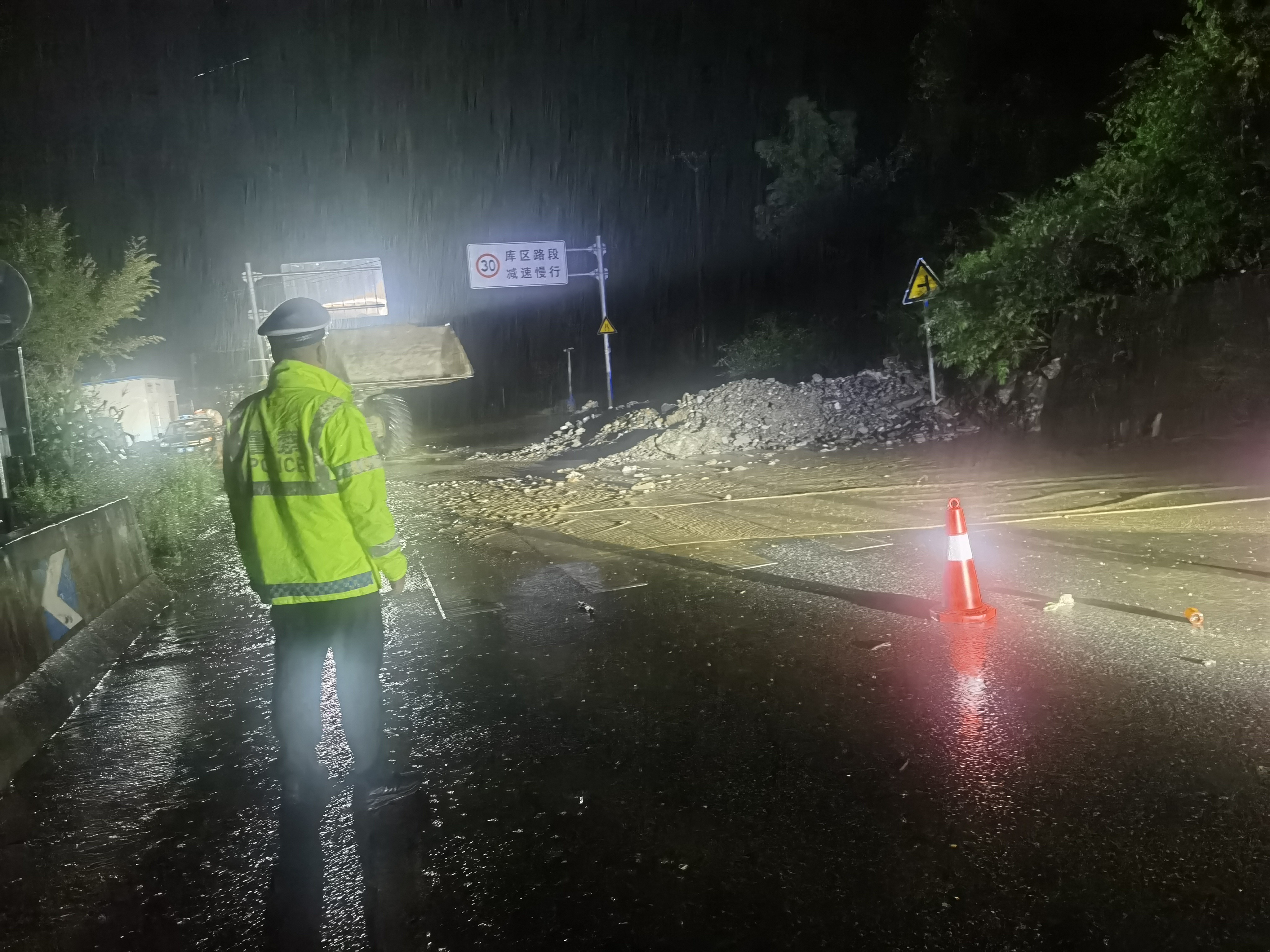 旬陽市公安交警持續(xù)堅守防汛一線,無畏風(fēng)雨、無懼危險,開展交通管控、救援救助、應(yīng)急處突、隱患排除等相關(guān)工作,全力保障人民群眾生命財產(chǎn)安全。暴雨中,交警身著熒光綠雨衣,不畏風(fēng)雨,堅守在重要路段,對有滑坡、落石等危險路段及具有安全風(fēng)險的臨水臨崖路段,采取臨時禁行的管制措施,引導(dǎo)過往車輛繞行,注意行車安全,協(xié)同相關(guān)部門現(xiàn)場進行清理,對不能現(xiàn)場處理的隱患及時上報,確保排險不留盲點、隱患不留死角。同時加強道路的巡邏管控,通過遠(yuǎn)端分流,引導(dǎo)車輛、行人安全有序通行,確保群眾出行安全。以雨為令,以夜為伴,逆風(fēng)而行,通宵達(dá)旦,風(fēng)雨中,一抹抹“熒光綠”在熠熠閃光。