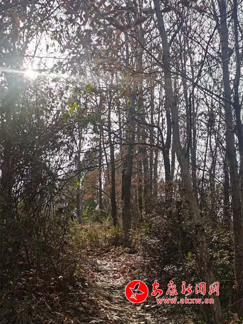 自彎彎樹往上再走一陣兒,便到了平緩開闊處。這里的林子里大多是松樹,空氣中彌漫著一股清新而獨特的氣息,那是松香的味道。金黃的松針鋪在地上,踩上去軟綿綿的,令人產(chǎn)生無限遐想。一只松鼠正在枝頭啃食松果,見有人走近,“嗖”的一聲跳躍到另一棵樹上,松果也隨之掉落,彈蹦著滾出老遠。樹旁的寒莓交織如網(wǎng),下面零星地生長著半枯的毛蕨,艷麗的火棘十分搶眼,一串串結(jié)滿枝頭,遠遠望去,就像個個待掛的大紅燈籠。一群群麻雀兒飛來飛去,呼朋引伴,嘰嘰喳喳,暢享著冬日陽光下的溫暖。我們有說有笑,沿著緩緩地小路徜徉,前行至又一道山梁。只見這里樺櫟高大,松柏森森,化香粗壯,青桐筆挺,猶如將軍列陣,威風凜凜,又似衛(wèi)兵站隊,夾道歡迎。在這幽深的林子里,有株柏樹傾而未倒,長過小路的上方,無數(shù)枝條頑強挺立、狀如綠屏,竟形成一道靚麗的拱門。此時,你當停下匆忙的腳步,站在這高崗上放眼山形地貌,觀察四周景象,探尋相互關(guān)聯(lián),洞悉自然規(guī)律。你看,在那迂緩的山腳下,多是權(quán)木叢生藤蔓交織,少有茂密森林參天大樹,而在這土地瘠薄、風摧雨折的梁頂上,卻是古木高聳、巨樹林立,一定會覺得彩虹總在風雨后,風雨成材所必歷。更能體會到只有擇高處立身,于難中求進,無懼風吹雨打、千磨萬擊,方能根深葉茂、本固枝榮、堅韌不拔、生機無限。