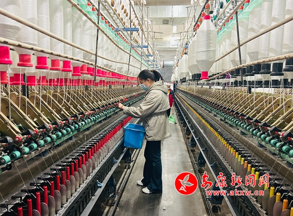 在陜西永豐特種紗線有限公司的生產車間,工人們忙碌地穿梭于機器間,雙手不時調整著紗線。該公司位于澗池鎮(zhèn)軍壩村,是一家主要從事包芯紗研發(fā)、生產和銷售,紡織原料、面料購銷和紡織設備進出口的現代化企業(yè)。
