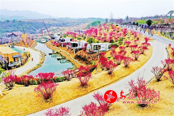 安康高新區(qū)桃花源,梅花與露營(yíng)地星空房、湖溪亭榭相映成畫。詹永桂 攝