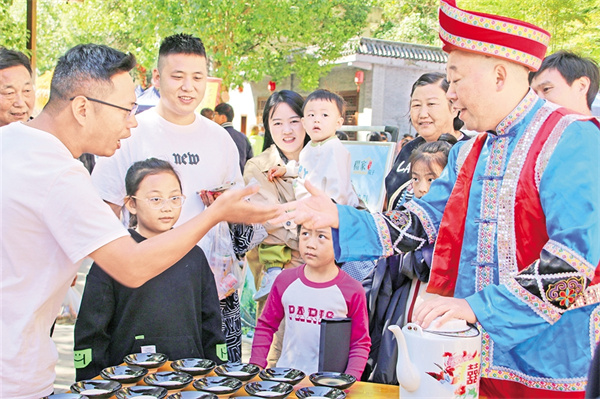 來自臺灣的游客阿偉第一次體驗(yàn)這“驚心動魄”的待客禮,雙手接碗,仰頭飲盡,再用力將碗口朝下摔向青石板。“哐當(dāng)”一聲脆響,瓷片四濺,周圍頓時響起一片喝彩?!八ね氲臅r候,心里真痛快!”阿偉笑著說。