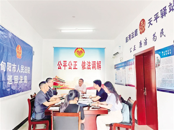 近年來,旬陽法院立足山區(qū)基層法院實際,在抓好人民法庭工作的基礎(chǔ)上,在法庭下轄鎮(zhèn)的村、社區(qū)設(shè)立“天平驛站”,安排法官定期輪值,及時響應(yīng)群眾訴求,實現(xiàn)矛盾糾紛一站式接收、一攬子調(diào)處、全鏈條閉環(huán)解決, 推動審判觸角向百姓“家門口”延伸。