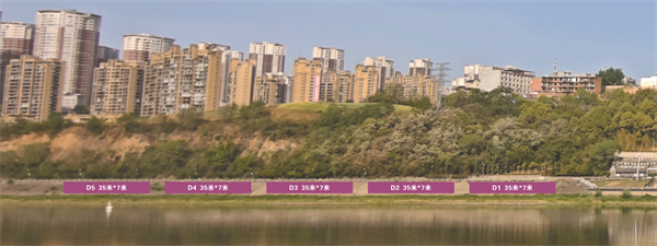 江北廣告位紫色區(qū)域:D1—D5,規(guī)格35米*7米,費用6萬。