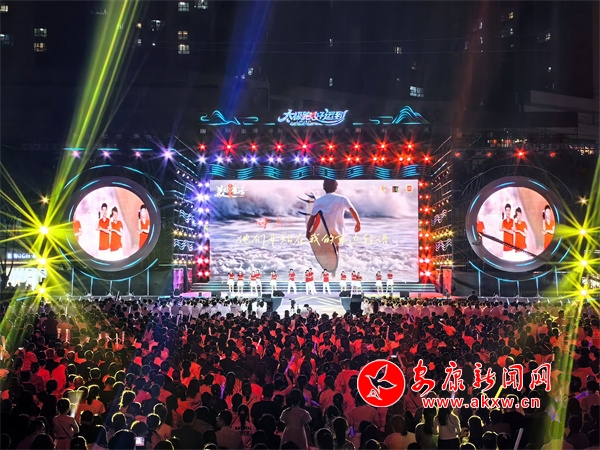 夜幕降臨,開幕式現(xiàn)場美輪美奐、氣勢恢宏。燈光秀、歌舞秀拉開活動帷幕,博得雷鳴般的掌聲。21個鎮(zhèn)代表隊登臺亮相?!盁熁ㄐ恪辫矈Z目,化作多彩光芒,點亮太極城的夜空。伴隨著現(xiàn)場觀眾的激情吶喊,文藝節(jié)目相繼上演,歌伴舞《沖呀!去旬陽》、旬陽好物旬陽非遺推介、舞蹈《舞動長樂紅》、民歌聯(lián)唱《姐不約郎郎不來》、千人復(fù)誦《太極·旬陽賦》、太極秀《太極江湖》、千人齊跳《太極舞》等節(jié)目,充分展示了旬陽的文化底蘊、旅游資源、人文風情,掌聲如潮、歡聲如雷。中國內(nèi)地歌手屠洪剛演唱的歌曲《你》《江山無限》《精忠報國》瞬間將現(xiàn)場氣氛燃爆。
