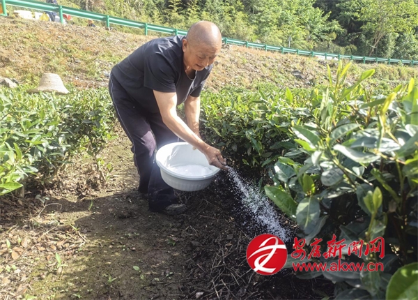 “沒想到政府直接把肥料送到茶園里了,既省時又省力,服務(wù)真是太周到了。我的2畝茶園分了70斤肥料,再過一段時間就可以機(jī)采夏秋茶了?!辈柁r(nóng)康中強(qiáng)滿臉喜悅地說。說話間,康中強(qiáng)順手將盆里的肥料,撒進(jìn)挖好的茶壟里。