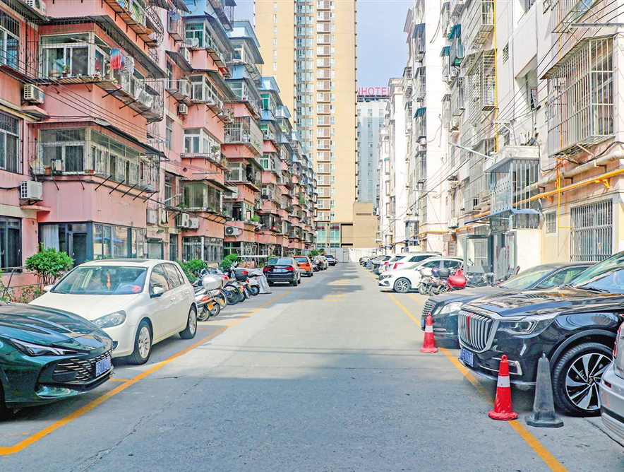 改造后的馨華園小區(qū)停車規(guī)范整齊。吳亞君 攝