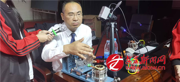 講座的亮點之一是關(guān)于“三相交流鼠籠式異步電動機(jī)”的現(xiàn)場實驗展示。嵇教授首先通俗易懂地闡釋了該類型電動機(jī)作為現(xiàn)代工業(yè)核心的重要地位及基本原理,隨后現(xiàn)場演示實驗過程,逐步解析其內(nèi)部結(jié)構(gòu)、旋轉(zhuǎn)磁場的形成機(jī)制,以及“鼠籠”轉(zhuǎn)子實現(xiàn)電能與機(jī)械能高效轉(zhuǎn)換的原理。抽象難懂的電磁學(xué)知識,在直觀的演示與生動的講解中變得清晰可感。嵇教授還引導(dǎo)同學(xué)們思考該項技術(shù)在各行各業(yè)的廣泛應(yīng)用,切身感受科技對社會發(fā)展的深遠(yuǎn)影響。這一環(huán)節(jié)有效激發(fā)了同學(xué)們對工程技術(shù)的興趣與對科學(xué)原理的探索熱情。