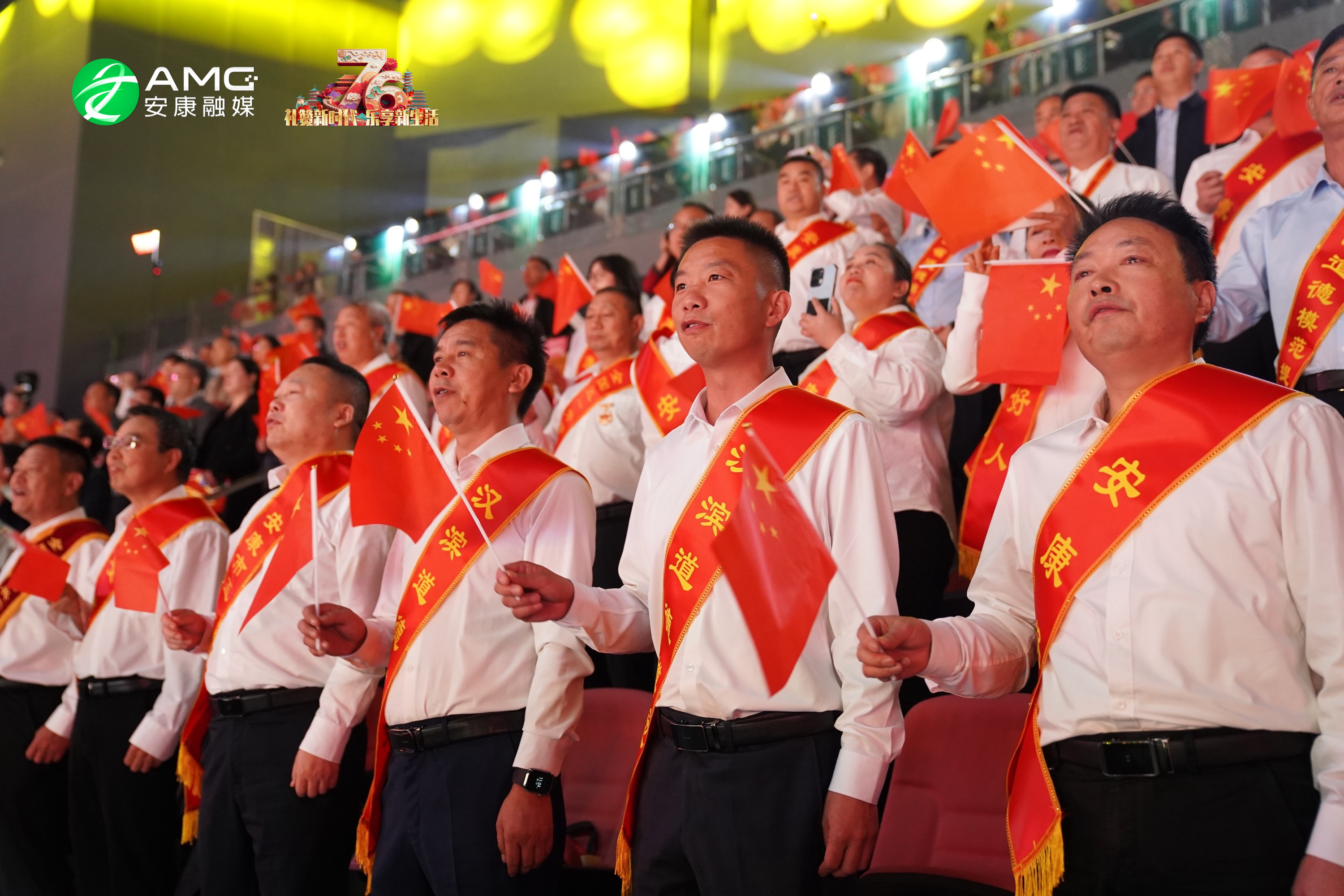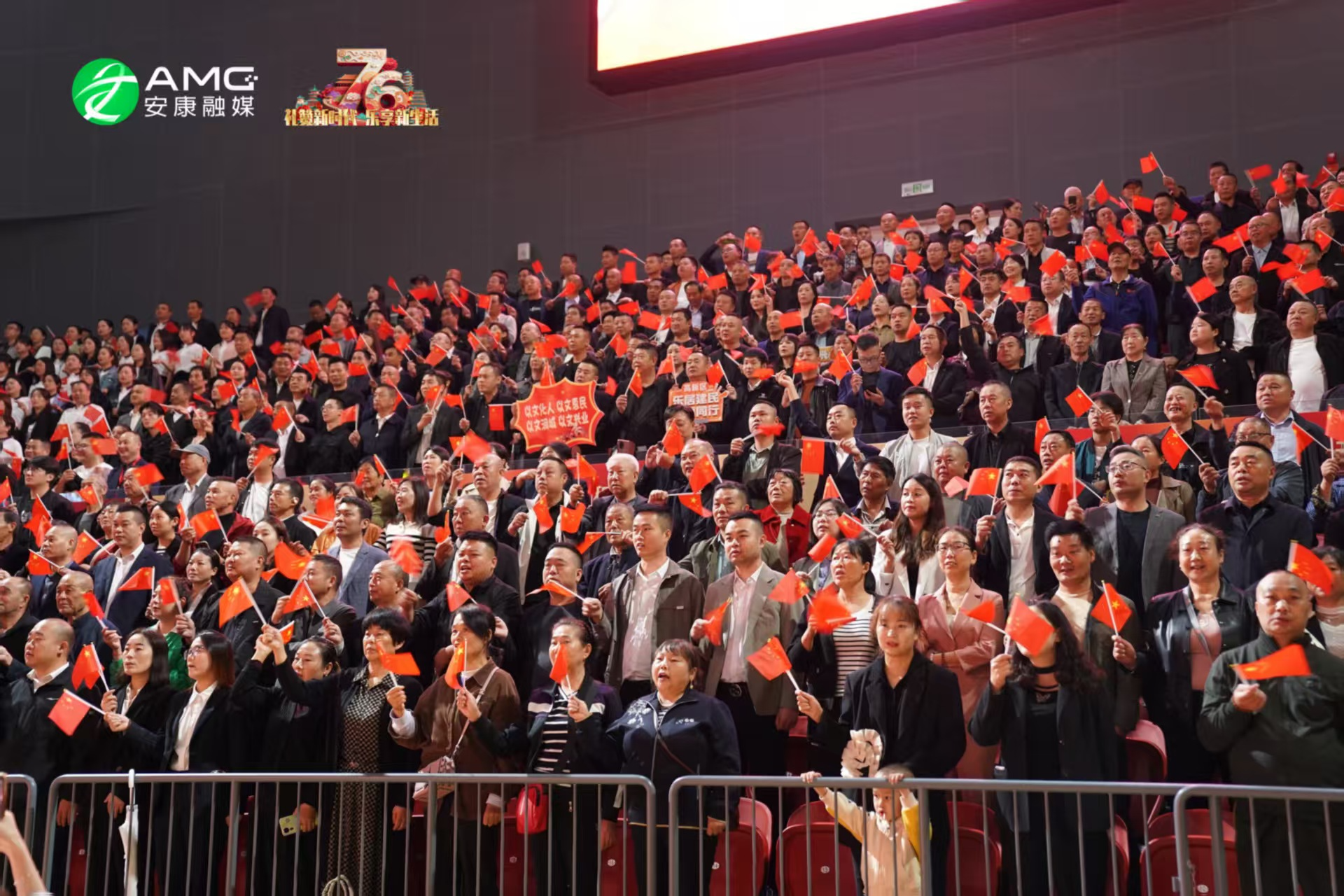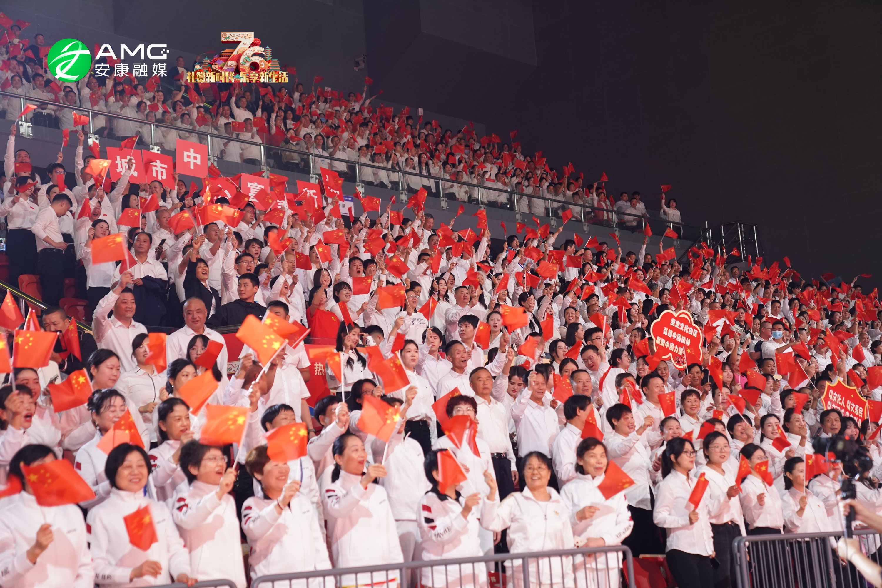 最后,全場(chǎng)人員起立揮舞紅旗,齊聲高唱《歌唱祖國》,用最真摯的歌聲祝福祖國繁榮昌盛,祝愿安康的明天更加美好。歌聲震徹場(chǎng)館,將整場(chǎng)活動(dòng)推向高潮。