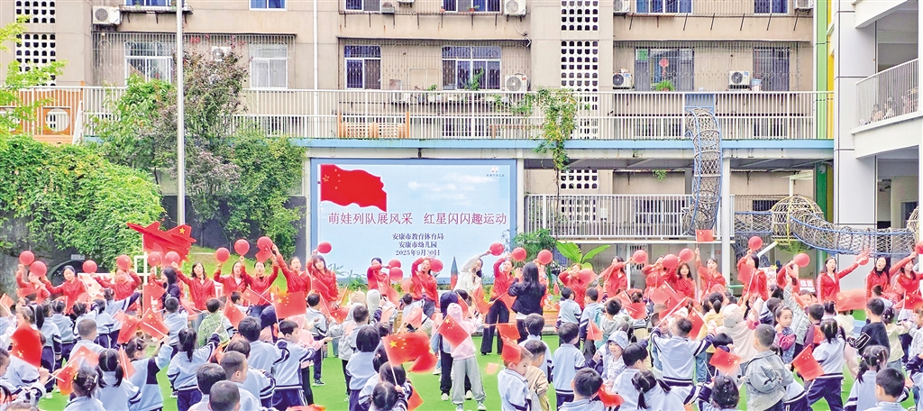 9月30日,安康市幼兒園舉辦“萌娃列隊展風(fēng)采 紅星閃閃趣運動”國慶主題活動。 李生珍 攝
