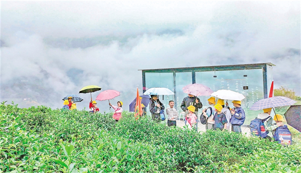 國(guó)慶期間,孩子們?cè)谧详?yáng)縣向陽(yáng)鎮(zhèn)的富硒茶觀光園,感受自然風(fēng)光與茶文化的獨(dú)特魅力。 儲(chǔ)茂銀 攝