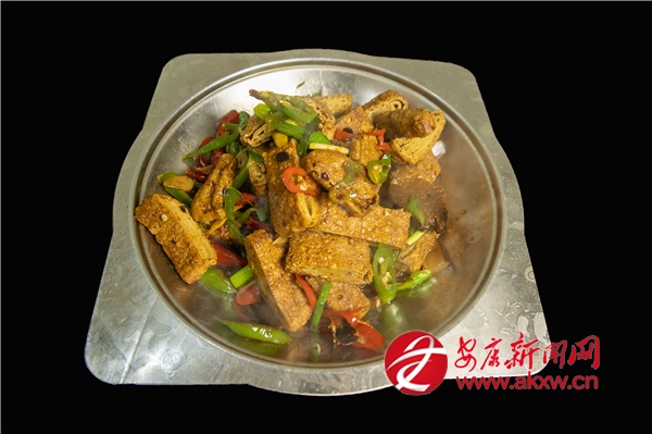 2011年,王鵬以糧食巷自己的住房為經(jīng)營場所注冊了寧陜縣菜根香私房菜菜館。同年,他又注冊成立了菜根香餐飲文化有限公司,致力于推廣地方餐飲文化。這里也是王鵬做高端菜品創(chuàng)作的起點。以土雞、山藥、蕓豆為主料的“瓦罐雞”經(jīng)過小火慢燉,雞肉軟嫩,湯清味鮮?!案慑伇ざ垢笔嵌垢すu蛋液在高溫下油炸后配以臘肉炒制調味后放入干鍋中,豆腐皮外形就有了豹紋,匠心制作的菜品咸香、豆香、復合香,自是山珍中難得的美味。10多年過去,這道菜仍然是大眾點評中的熱選菜品。