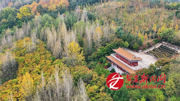 初冬時(shí)節(jié),漢陰的龍崗公園內(nèi)外層林盡染,與人文景觀交相輝映,構(gòu)成一幅流動(dòng)的山水畫卷。公園地勢(shì)連綿,園內(nèi)步道蜿蜒,亭臺(tái)錯(cuò)落。從空中望去,茂密的林木披上了紅、黃、橙交織的花衣裳,與常綠樹(shù)種相互點(diǎn)綴,猶如大地的調(diào)色盤。山頂?shù)凝垗忛w巍然屹立,在金黃烏柏與如火楓葉的簇?fù)碇校蔀檎麄€(gè)公園的視覺(jué)焦點(diǎn)。登閣遠(yuǎn)望,漢陰縣城全貌盡收眼底,月河如帶穿城而過(guò),與秋日晴空共同勾勒出“水天一色”的壯美圖景。(通訊員 文婷 徐歡)