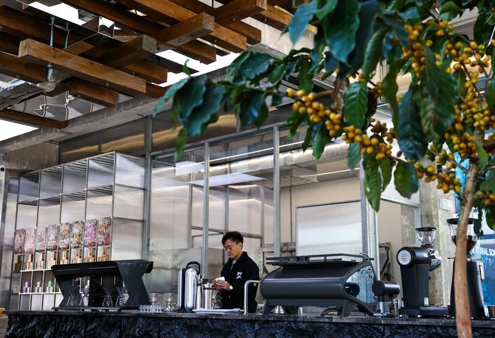 2025年12月10日,旅居云南的韓君瑋在位于昆明的南來盛咖啡店內(nèi)制作咖啡。韓君瑋自清華大學(xué)畢業(yè)后,已在咖啡行業(yè)耕耘十余年。2024年,他受聘成為云南一家老字號咖啡品牌的品牌總顧問,從此投身到云南咖啡的產(chǎn)品研發(fā)和品牌推廣工作中。一年多來,他每月都會來到昆明,短則幾天,長則數(shù)周,開啟了一種“半旅居、半工作”的生活模式?!霸颇巷L(fēng)景優(yōu)美、氣候宜人,我很享受這樣的狀態(tài)。”韓君瑋說。