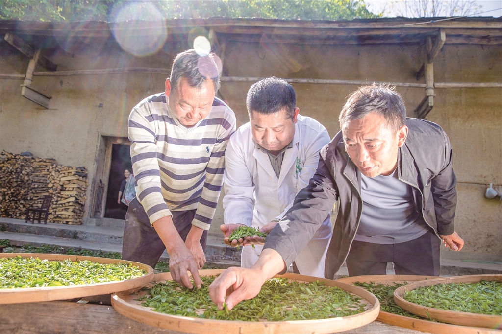 “十四五”期間,我市持續(xù)推進(jìn)茶產(chǎn)業(yè)發(fā)展,努力實(shí)現(xiàn)茶產(chǎn)業(yè)“四時(shí)有收”。圖為紫陽白茶非遺制作技藝代表性傳承人在高橋鎮(zhèn)裴壩村,向茶農(nóng)推廣紫陽白茶非遺制作技藝。