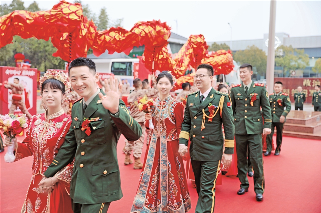 “舉辦集體婚禮,既是對官兵奉獻精神的肯定,也是落實暖兵惠兵政策的具體舉措?!痹撝ш狀I(lǐng)導(dǎo)介紹,支隊始終把官兵的“急難愁盼”放在心上,積極協(xié)調(diào)駐地資源,相繼開展“五送”服務(wù)走基層、軍地相親聯(lián)誼會和懇談會等活動,持續(xù)改善官兵生活條件,用心用情解決官兵后顧之憂,讓他們能夠以更飽滿的熱情投身練兵備戰(zhàn)。