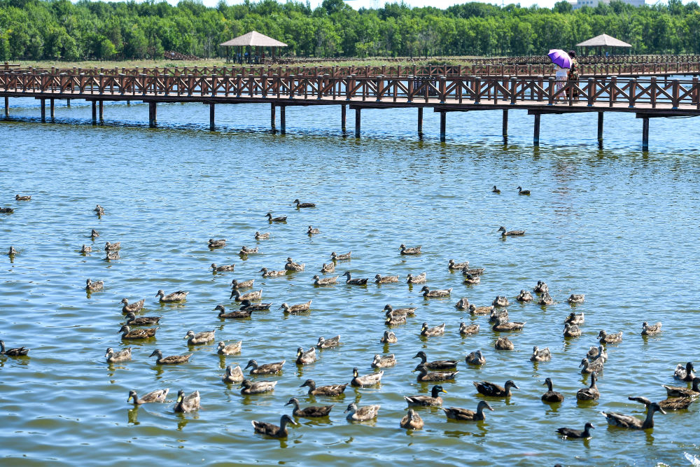 ??2024年8月26日,游客在查干湖野鴨島游覽。截至2025年5月9日,查干湖實施濕地保護(hù)與恢復(fù)項目24個,保護(hù)區(qū)濕地面積達(dá)517.2平方公里,成為全球九大候鳥遷徙路線的“能量補(bǔ)給站”。隨著觀鳥、拍鳥熱潮興起,“觀鳥經(jīng)濟(jì)”為當(dāng)?shù)匚穆米⑷胄禄盍Α?/span>