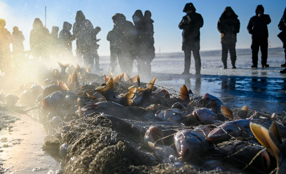 ??2021年12月26日,游客在查干湖冰面上觀看冬捕。近年來,查干湖在保護(hù)生態(tài)環(huán)境的基礎(chǔ)上,推動冬捕的可持續(xù)發(fā)展,通過科學(xué)規(guī)劃捕撈量、加強(qiáng)漁業(yè)資源管理等措施,確保查干湖漁業(yè)資源的穩(wěn)定增長。