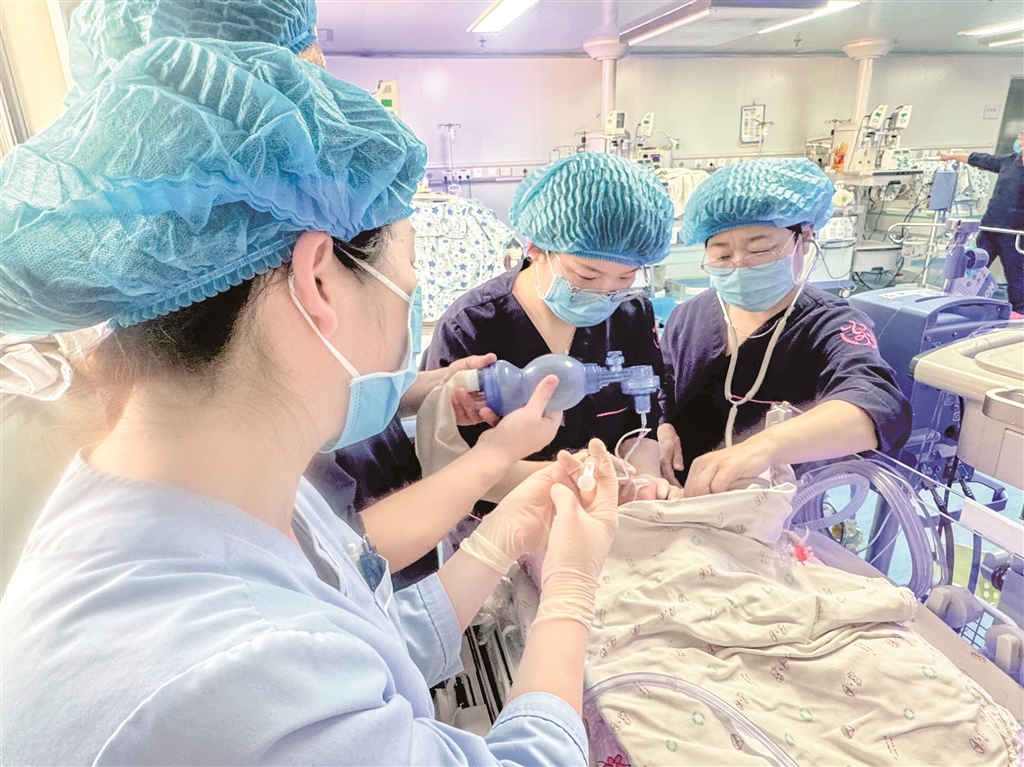 醫(yī)護(hù)人員為早產(chǎn)兒做系列搶救措施