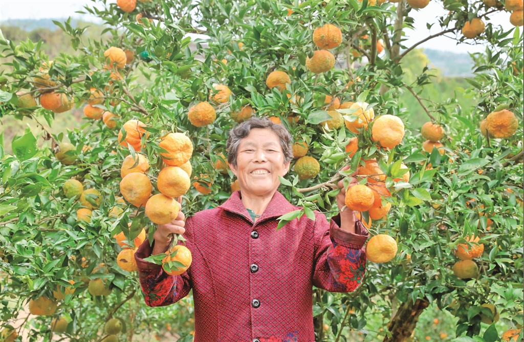 柑橘豐收季,漢濱區(qū)張灘鎮(zhèn)田灣社區(qū)農(nóng)戶胡德英捧著金黃的柑橘,臉上洋溢著豐收的喜悅。 張敏 攝