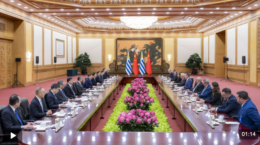 奧爾西說:“尊敬的習近平主席閣下,烏拉圭高度重視此次對華國事訪問,這也體現(xiàn)在我們派出了很高級別的代表團。今天恰逢兩國建交38周年,兩國的全面戰(zhàn)略伙伴關(guān)系正處于歷史最好時期。烏方有意進一步深化雙方在各領(lǐng)域的合作?!?/p>