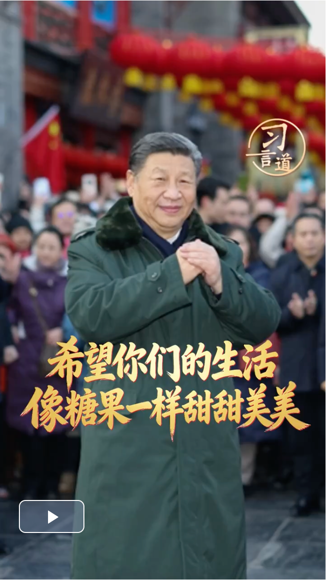 每逢春節(jié)前夕,總書記都會走到基層、百姓中間。在天津古文化街,總書記掏錢買麻花作為見面禮,送給身旁的小朋友,說“送你一份麻花”;在遼寧,總書記接下孩子們遞來的糖果,親切地說,你們的糖我收下,吃了你們的糖心里很甜。一個個親切有愛的感人畫面,充滿了溫情,傳遞著感動。
