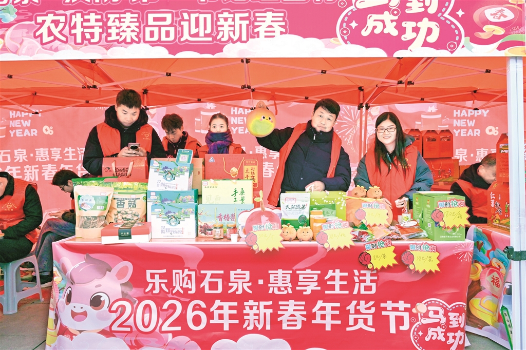 石泉縣2026年年貨節(jié)暨春季產(chǎn)業(yè)大招工·蘇陜勞務(wù)協(xié)作招聘會啟動儀式近日在秦巴風(fēng)情園舉行。本次活動創(chuàng)新融合“春風(fēng)行動”招聘會、年貨節(jié)與文旅促銷,吸引了縣內(nèi)外210余家重點企業(yè)參與,集中提供4500個優(yōu)質(zhì)崗位,旨在促進就業(yè)與消費,助力縣域經(jīng)濟發(fā)展。(董長松 攝)