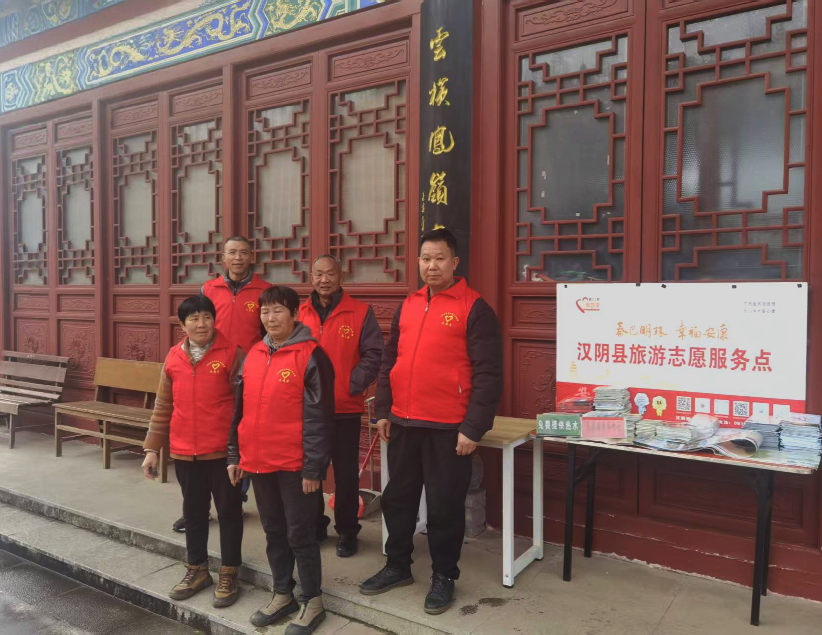 春節(jié)期間,志愿者在漢陰縣龍崗公園堅守崗位。他們放棄與家人團(tuán)聚的時光,用行動詮釋奉獻(xiàn)與擔(dān)當(dāng),守護(hù)游客的平安與歡樂。王磊 攝