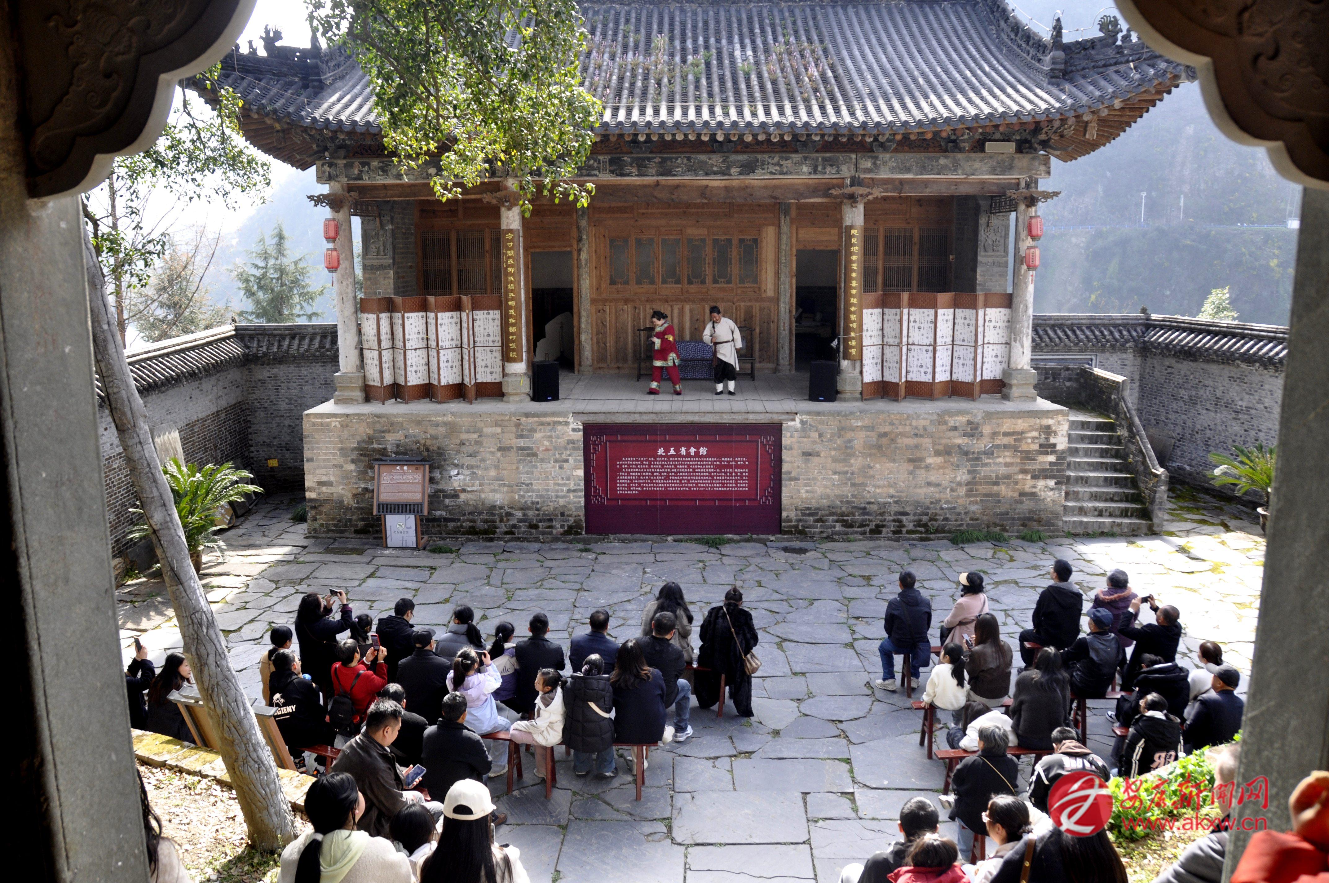 為豐富群眾的精神文化生活,2月22日,紫陽縣在北五省會館開展了主題文化活動。圖為歌劇《王二嫁嫂》專場演出,吸引眾多游客駐足欣賞。彭召伍 攝