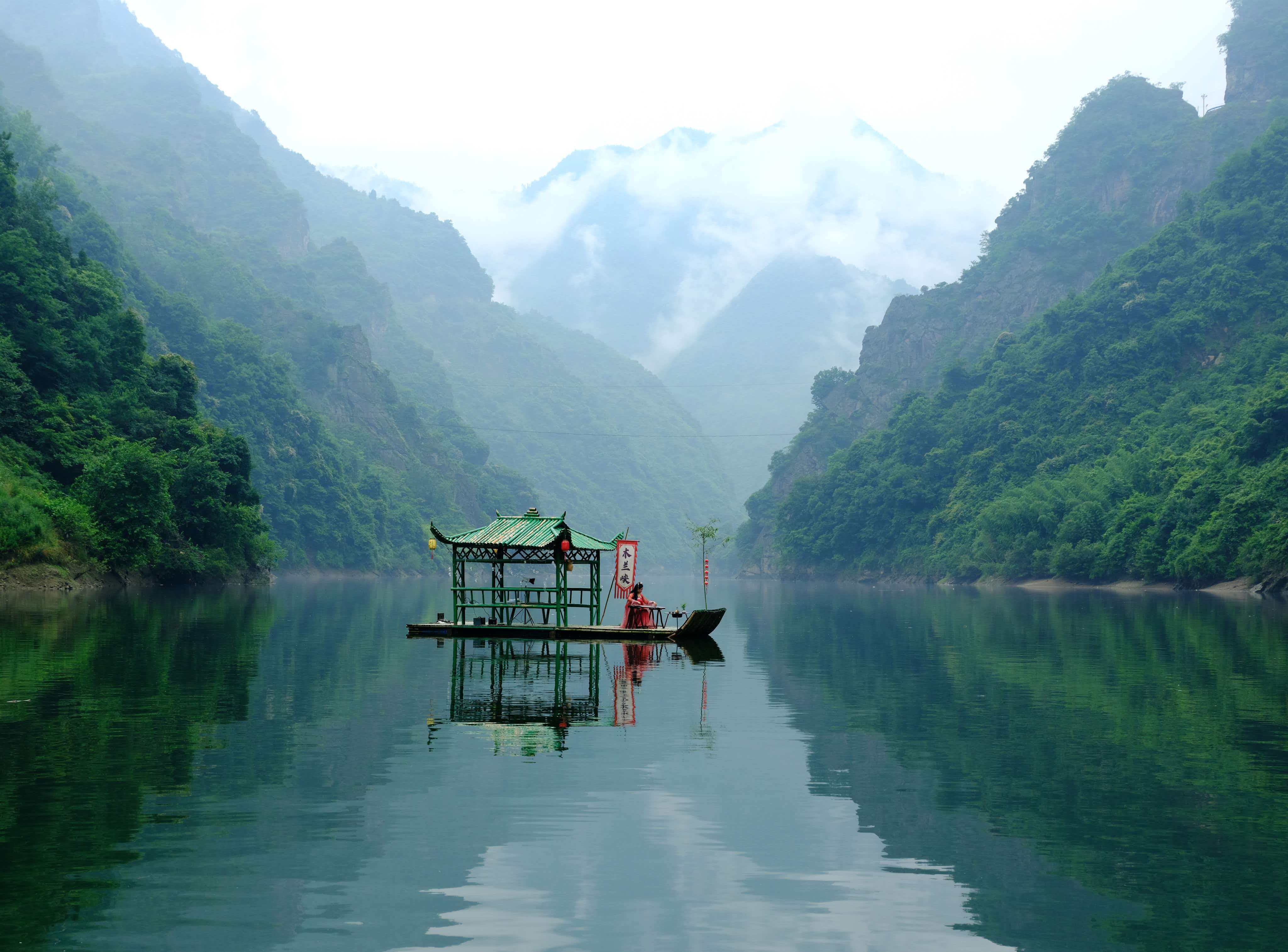 2012年夏天,我陪客人走進毛壩鎮(zhèn)。朋友做向?qū)?,這才第一次見識了木蘭峽,紫陽的深山里,原來藏著這般景致。峽水幽幽,綠得深沉,不起一絲波瀾。小船行在水上,像是劃破了一匹綠綢子;又像是根本沒動,只靜靜地浮著,浮在一整個下午的光陰里。兩岸奇峰默然對峙,滿坡蓊蓊郁郁,盡是些叫不出名字的樹木。偶爾有野山羊從崖邊下來,到峽邊低頭喝水,見了人也不是很怕。峽的盡頭,一段古纖道斜斜地臥在峽邊,石頭上還留著當年的鑿痕。不遠處立著一塊清代道光年間的石碑,上面的字跡雖已模糊,卻仿佛還在那里,低聲訴說著從前的熱鬧。
