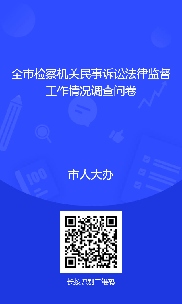 根據(jù)市人大常委會2026年度監(jiān)督工作安排,經(jīng)研究,決定于2026年3月中旬到4月下旬對全市檢察機關(guān)民事訴訟法律監(jiān)督工作開展專項評議。按照《安康市人民代表大會常務(wù)委員會專項工作評議辦法》規(guī)定,專項工作評議采取委托調(diào)查、視察評議、集中評議等方式進行。為擴大群眾參與,提高評議質(zhì)量,現(xiàn)向社會公開征求對全市檢察機關(guān)民事訴訟法律監(jiān)督工作的意見和建議。請掃描二維碼客觀公正、實事求是地填寫問卷,也可以通過信件、傳真或電子郵件方式送達,截止日期為2026年4月13日18時。
