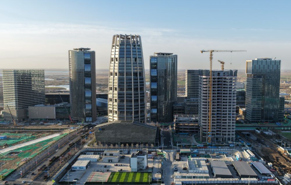 雄安商務服務中心是新區(qū)首個標志性城市建筑群,建筑風格以東方美學立體展現(xiàn)雄安特色風貌,功能包括酒店、專家公寓、商業(yè)等。2022年底,該中心投入使用。通過綠色建筑技術的集成與創(chuàng)新,這里實現(xiàn)了綠建三星標準全覆蓋,項目預計每年可節(jié)約用電1100萬度。這是2022年3月28日拍攝的雄安商務服務中心。