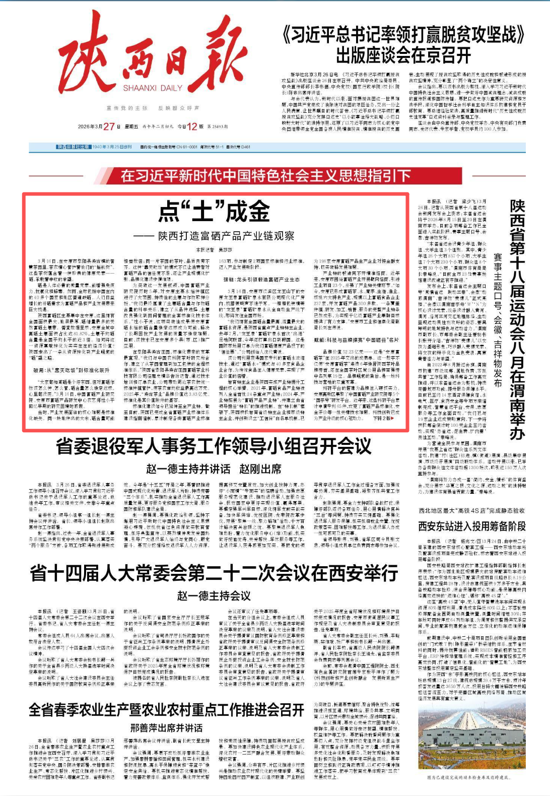《陜西日?qǐng)?bào)》丨點(diǎn)“土”成金——陜西打造富硒產(chǎn)品產(chǎn)業(yè)鏈觀察