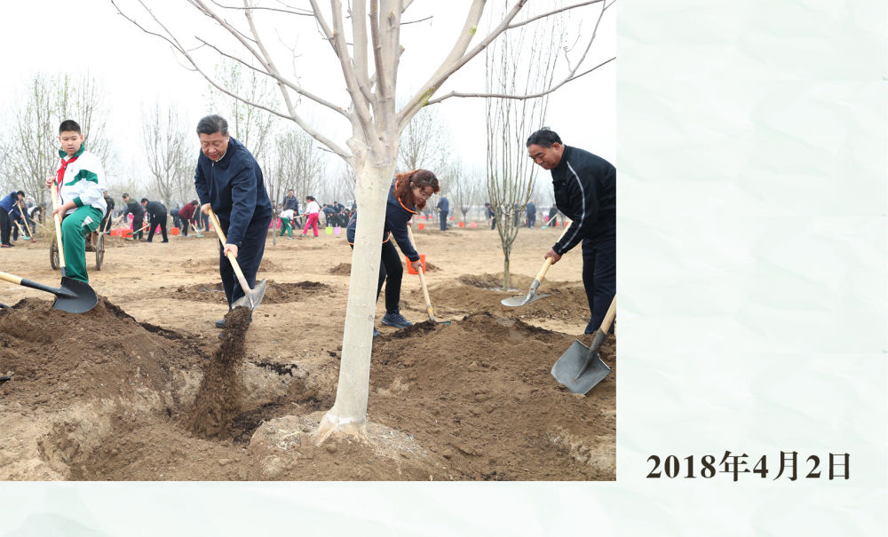 這是習(xí)近平總書(shū)記同大家一起植樹(shù)。