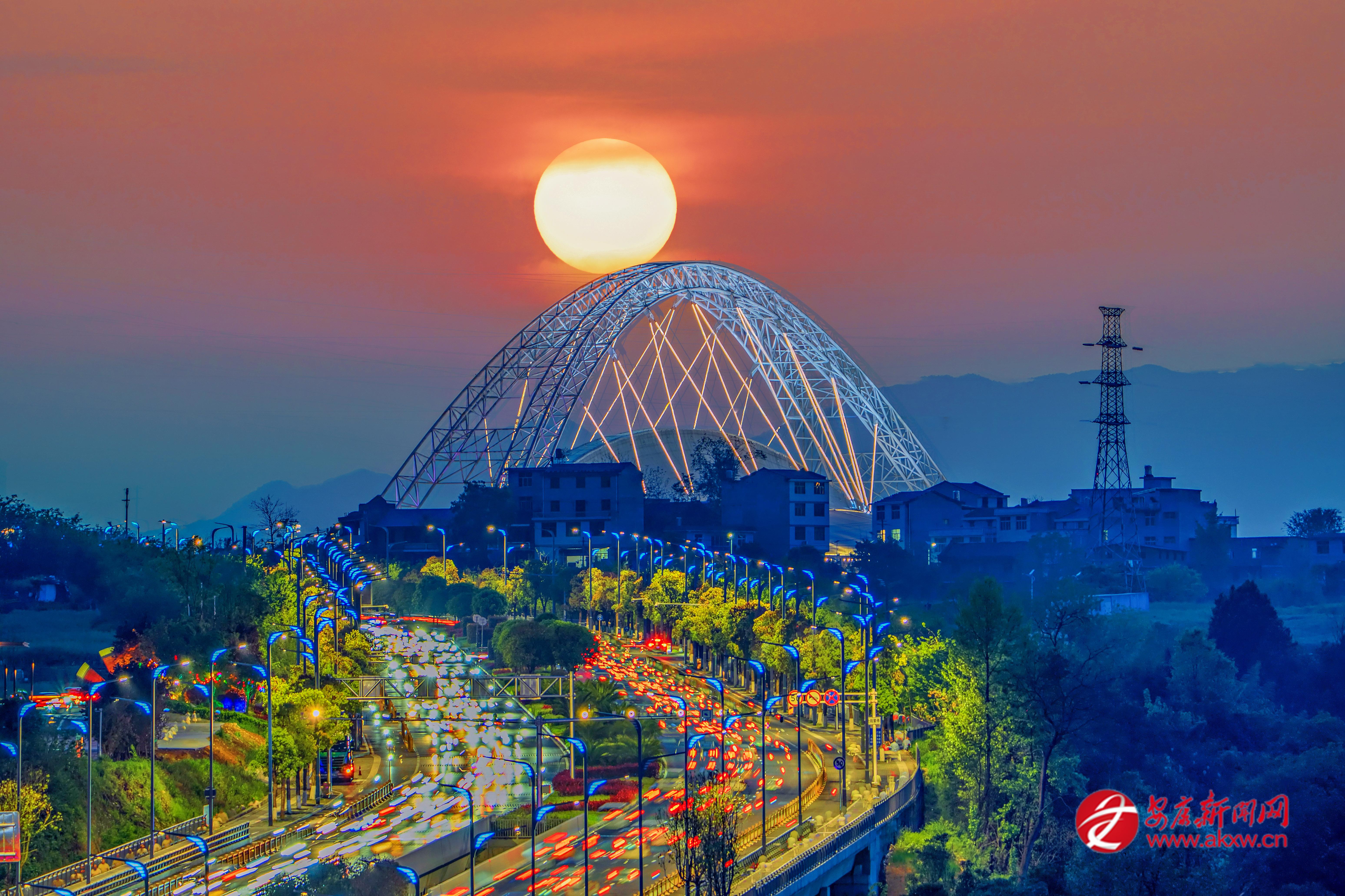 4月9日日落時分,安康市體育館外車流如織,一輪夕陽沉落于體育館穹頂之上,春日晚霞風(fēng)光令人沉醉。 皮勇維 攝
